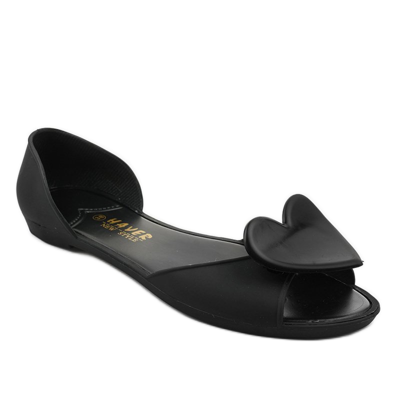 Mustat Meliski-kumibaleriinat sydämellä KM121-8 ovat ainutlaatuisia ja tyylikkäitä jalkineita, jotka sopivat täydellisesti kevään ja kesän trendeihin. Niille on ominaista yksinkertainen, klassinen muotoilu, joka vetoaa varmasti kaikkiin tyylikkäiden ja mukavien jalkineiden ystäviin.
