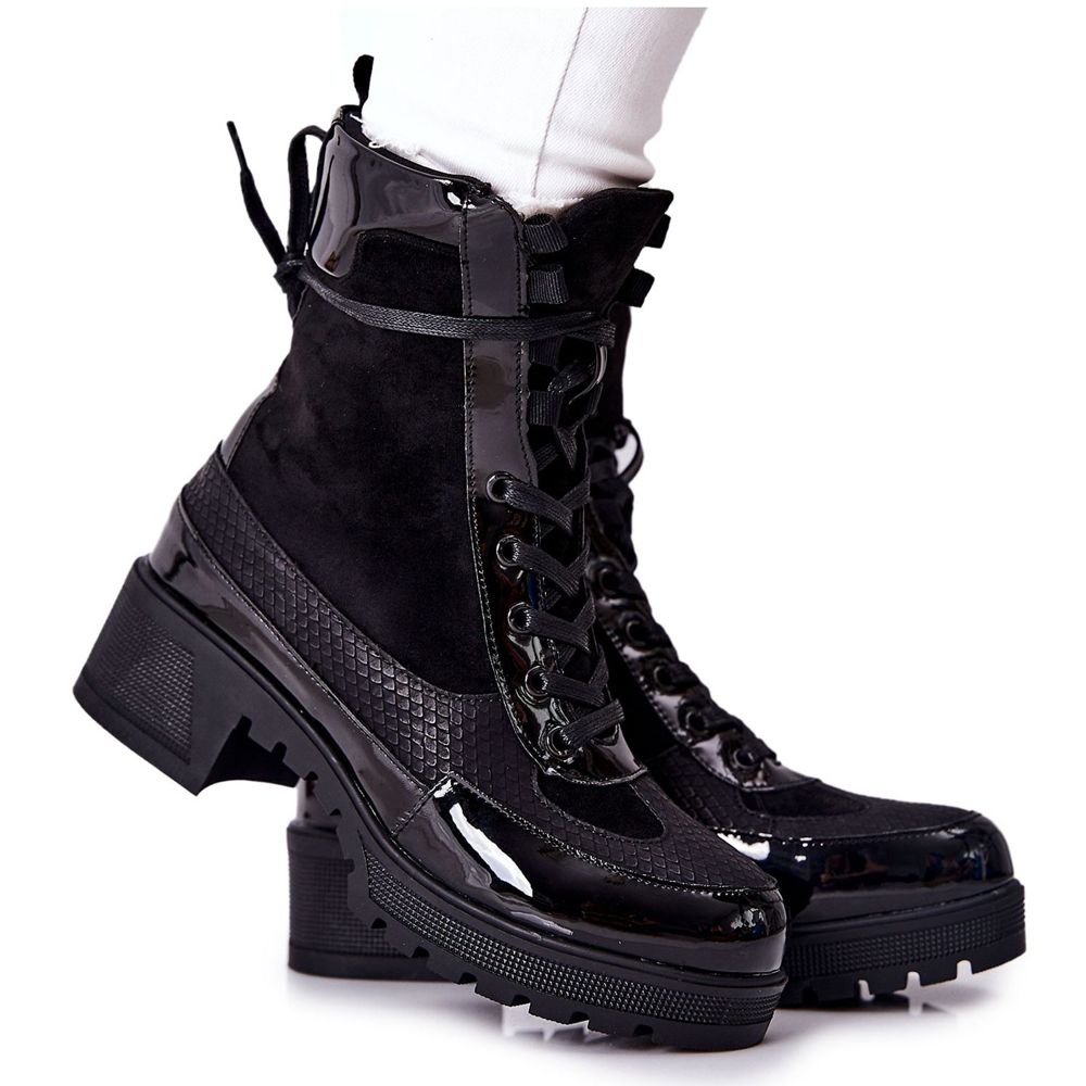 Nämä muodikkaat saappaat on valmistettu huolellisesti korkealaatuisesta eko-nahasta, mikä varmistaa kestävyyden ja helpon huollon. Lakattu ekonahka päällisen yläosassa ja pohjassa antaa niille ainutlaatuisen luonteen, ja sidos mahdollistaa täydellisen istuvuuden mihin tahansa jalkaan. Herkkä lohkokorko (korkeus 4,5 cm) nostaa vartaloa hienovaraisesti ja tekee jokapäiväisestä muotoilusta tyylikkäämmän.