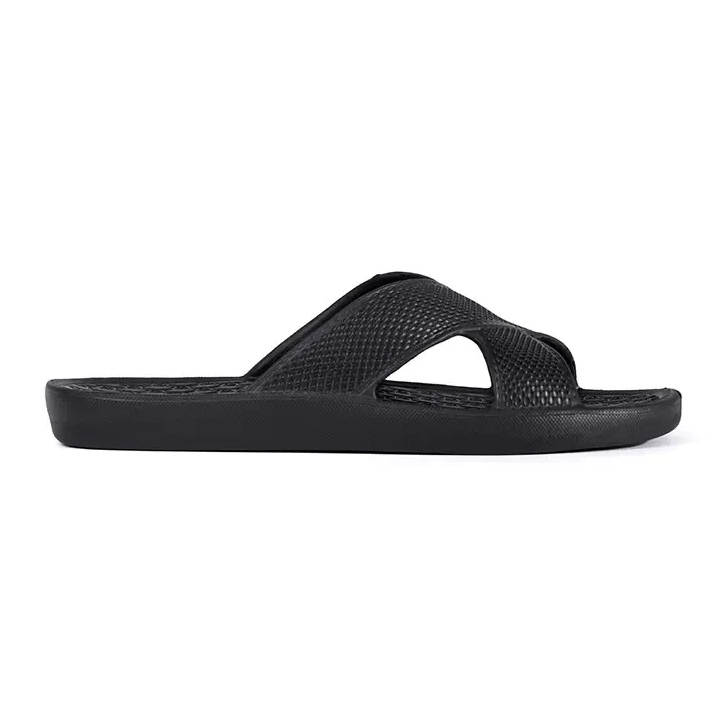 Tälle mallille on ominaista liukuva lukko, mikä helpottaa laittamista ja lähtöä, mikä tekee niistä täydellisen valinnan rannalle, uima -altaalle tai joka päivä. Muovinen pohja tarjoaa riittävän tarttuvuuden, mikä lisää turvallisuutta kävellessä liukkailla pinnoilla.