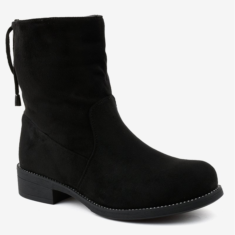 Yksityiskohdat: Mustat mokkanahkaiset litteät saappaat 7378-PA