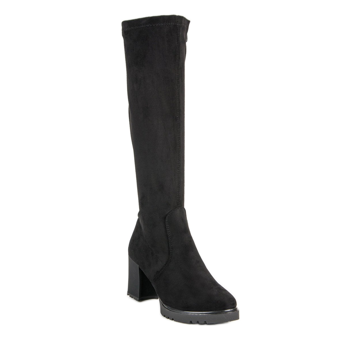 Mustat mokkanahkaiset saappaat ovat täydellinen valinta naisille, jotka haluavat yhdistää eleganssia mukavuuteen. Ekologisesta mokkanahkasta valmistetut ne näyttävät erittäin tyylikkäiltä ja vastaavat viimeisimpiä muotitrendejä. Nämä klassiset polvisaappaat korostavat täydellisesti naisen vartaloa, ja korkea 8,5 cm korkea kantapää saa jalat näyttämään ohuemmilta ja siroisemmilta.