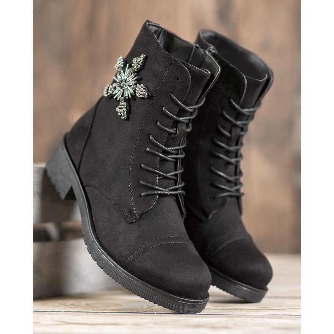 SHELOVET tarjoaa kenkiä, joissa yhdistyvät muoti ja toiminnallisuus, jolloin jokainen nainen tuntee itsensä niissä erityisenä. Valitse mustat mokkanahkaiset nilkkurit, joista tulee korvaamaton osa vaatekaappiasi syys/talvikaudeksi!