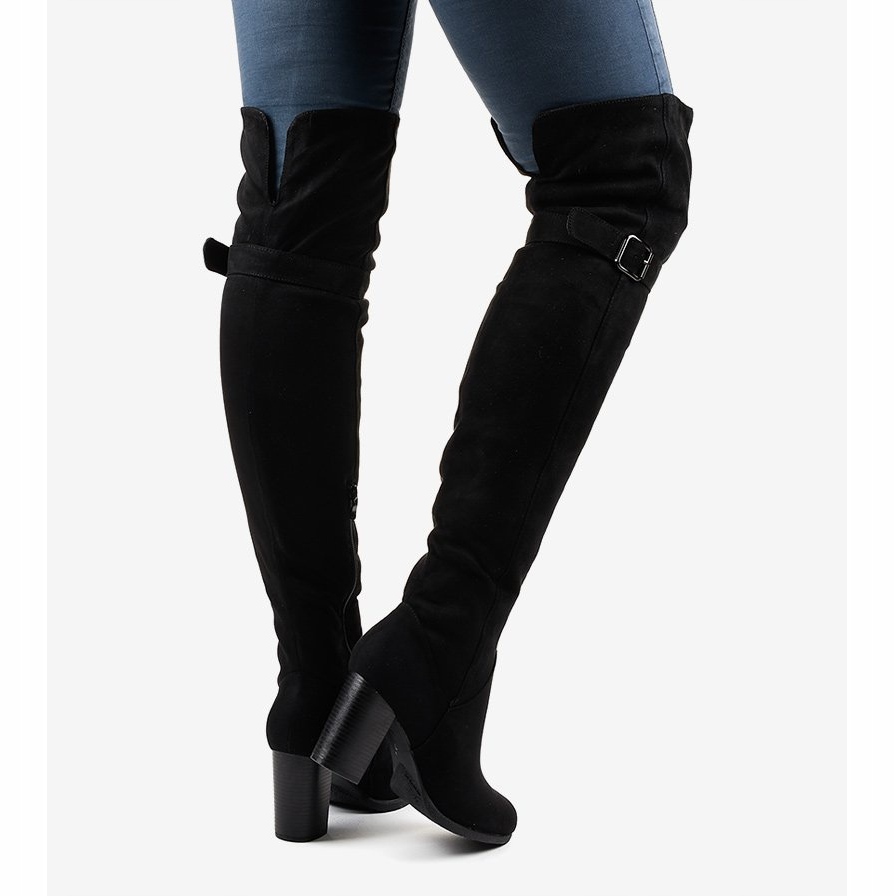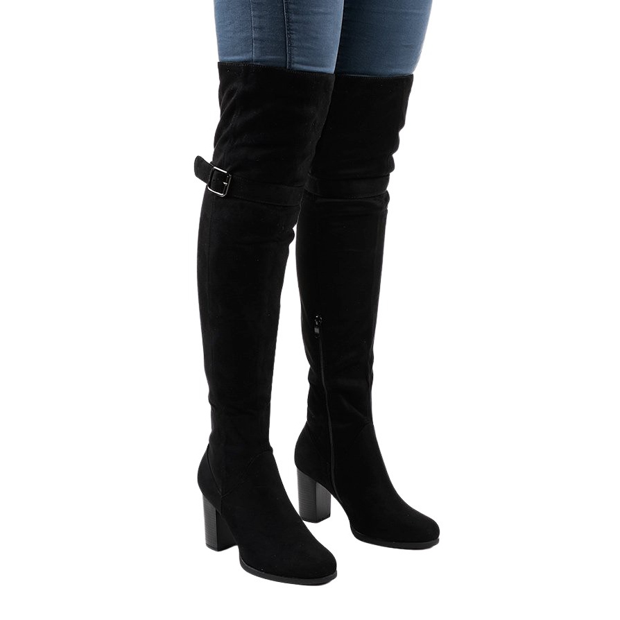 Saappaissa on käytännöllinen vetoketju sivulla, jonka ansiosta ne on helppo pukea ja riisua. Pyöreä kärki ja 5 cm korkea tolppa tekevät kengistä mukavat ja vakaat, ja kenkien 60 cm korkeus saa ne näyttämään hyvältä jalassa.