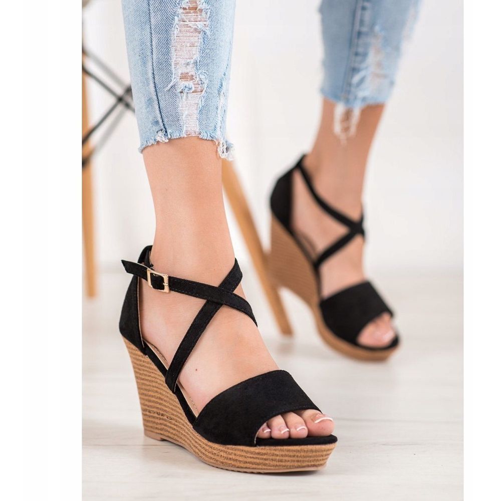 Löydä eleganssia ja mukavuutta yhdessä Small Swan -malleista - mustista mokkanahkakiiloista. Nämä klassiset sandaalit ovat täydellinen valinta jokaiselle naiselle, joka haluaa tuntea olonsa tyylikkääksi ja mukavaksi kesäpäivinä ja -iltoina.