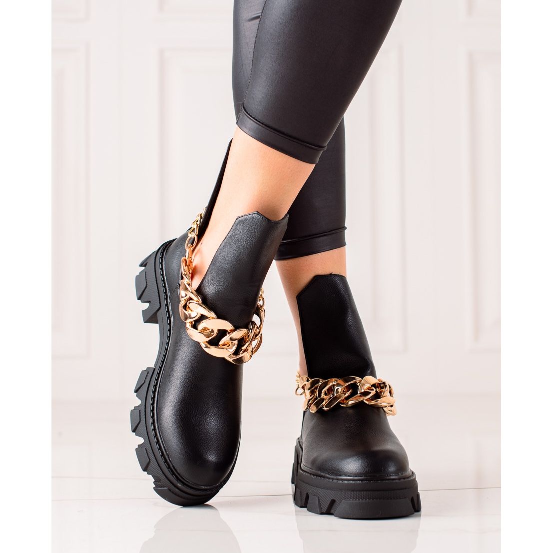 Laadukkaasta keinonahasta valmistetuille saappaille on ominaista rakennettu, pehmeä kantapää ja pyöreä kärki, mikä tekee niistä mukavat käyttää koko päivän. Päälliseen sijoitettu kultaketju tekee niistä houkuttelevia ja tekee niistä ei liian vähäpätöisen elementin mihinkään tyyliin.