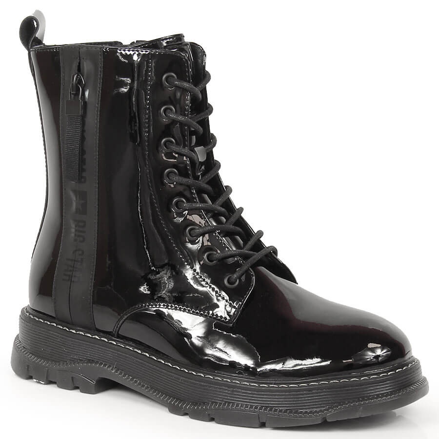 Big Star Mustat nahkaiset kiiltonahkaiset naisten saappaat, joissa eristetty musta Big Star KK274489