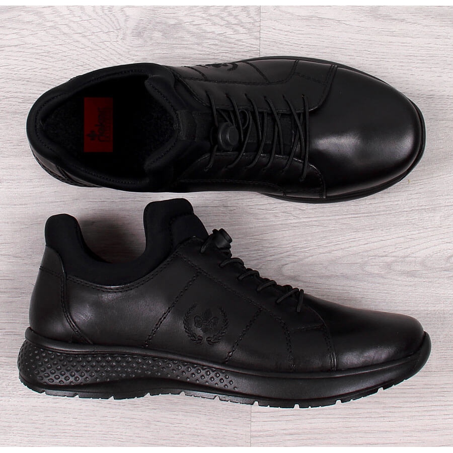 Yksityiskohdat: Mustat nahkaiset miesten vapaa-ajan kengät Rieker B7694-00