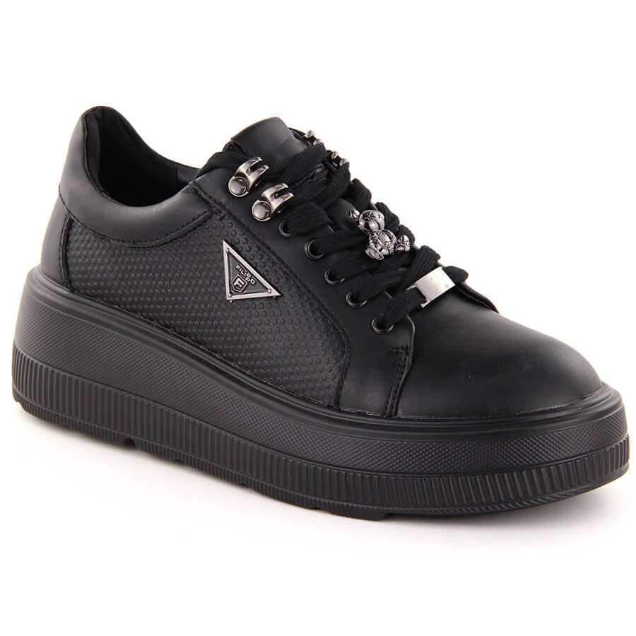Filippo Mustat nahkaiset naisten kengät alustalla Filippo DP6382
