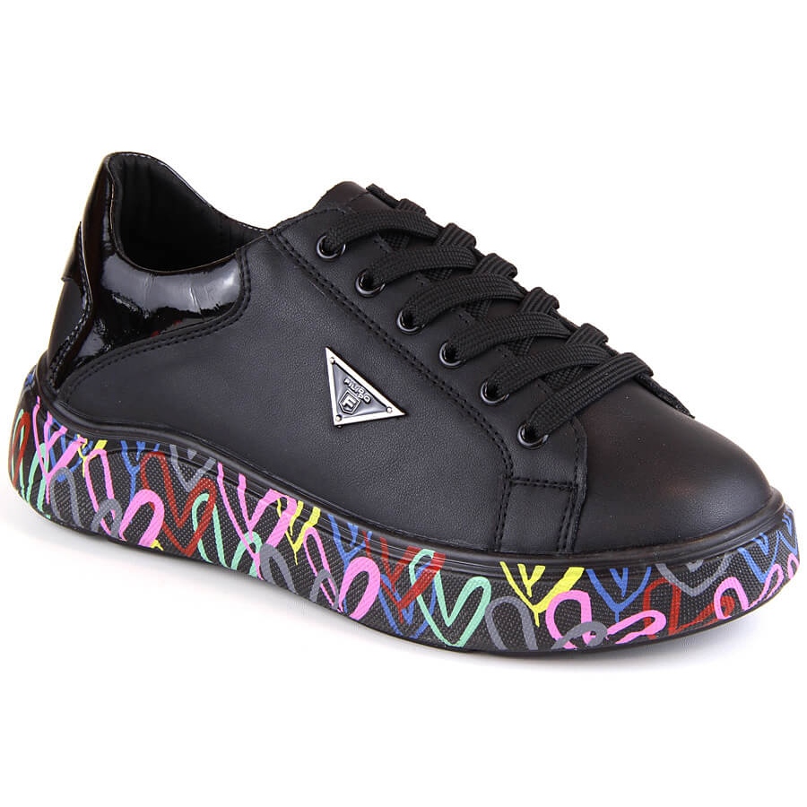 Yksityiskohdat: Mustat nahkaiset naisten kengät värikkäällä alustalla Filippo DP4480