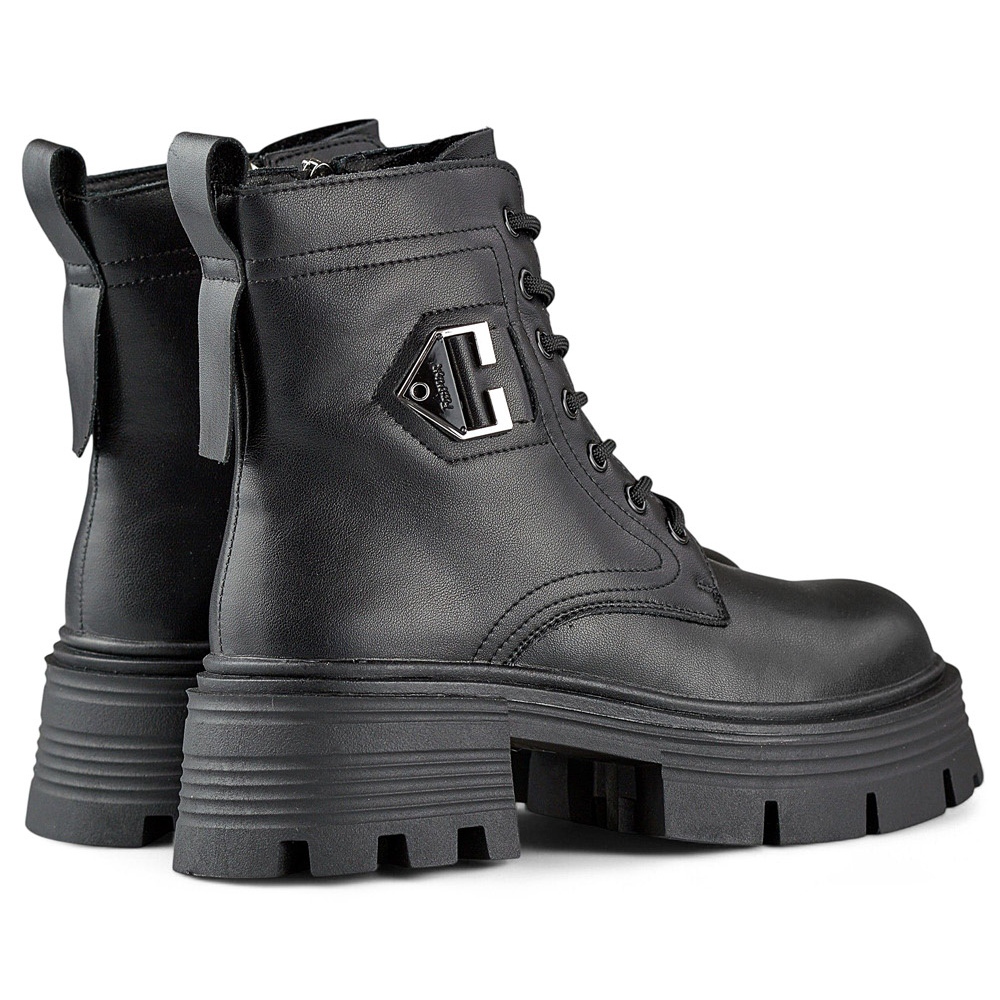 Inna marka Mustat nahkaiset naisten nilkkurit alustalla, eristetyt saappaat luonnonnahasta