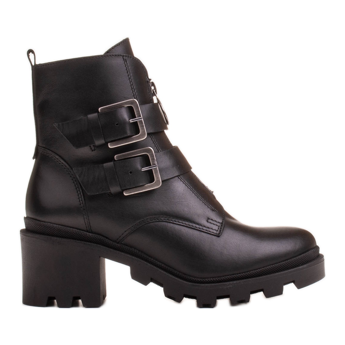 Marco Shoes Marco Shoes Mustat nahkaiset nilkkurit paksulla ja kevyellä pohjalla