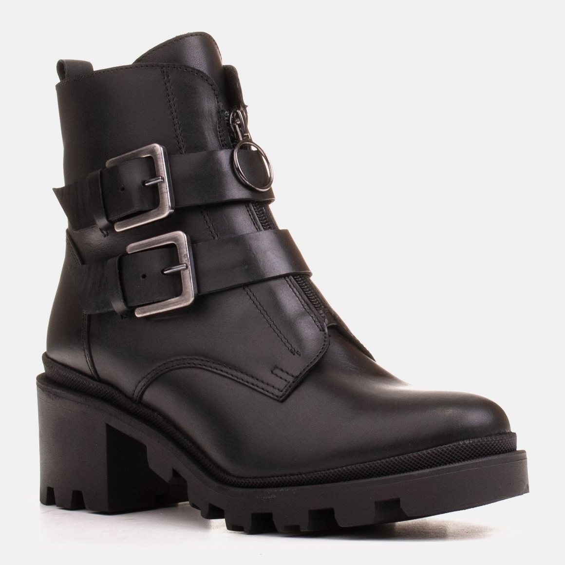 Yksityiskohdat: Marco Shoes Mustat nahkaiset nilkkurit paksulla ja kevyellä pohjalla