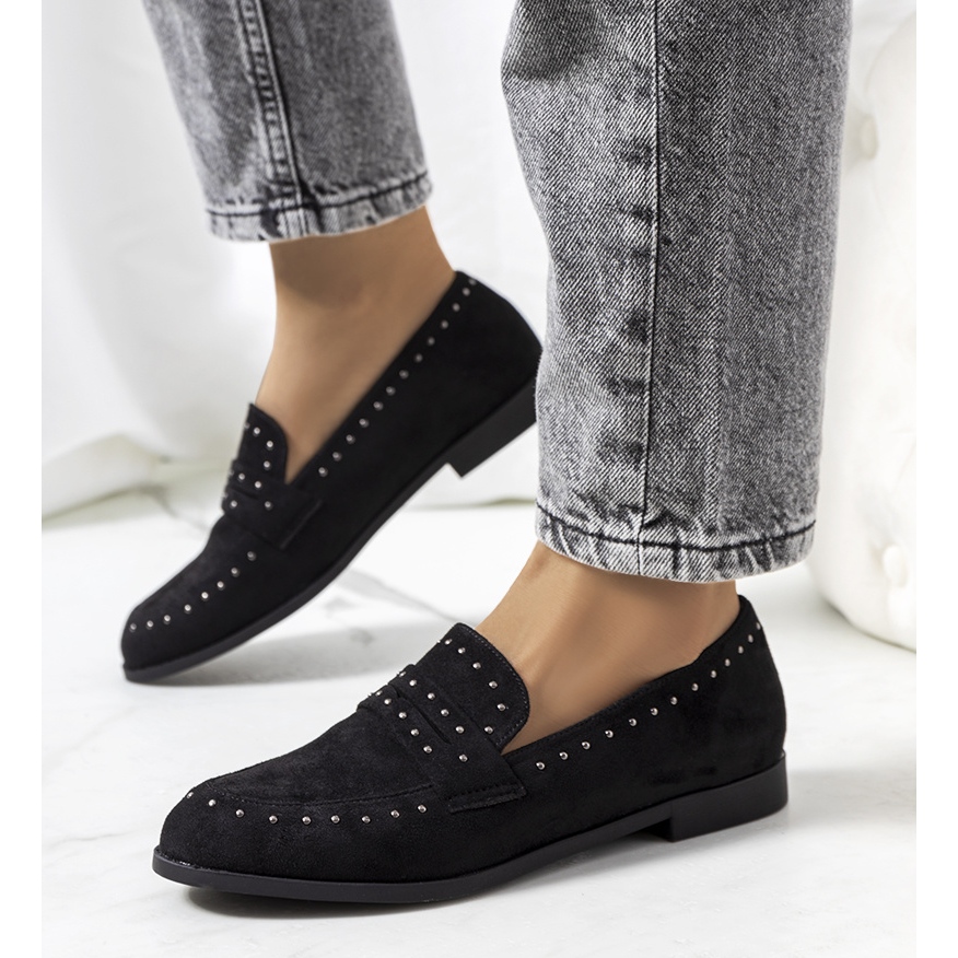 Mustat nahkakengät Ishanin nastat - eleganssi kallion aksentilla