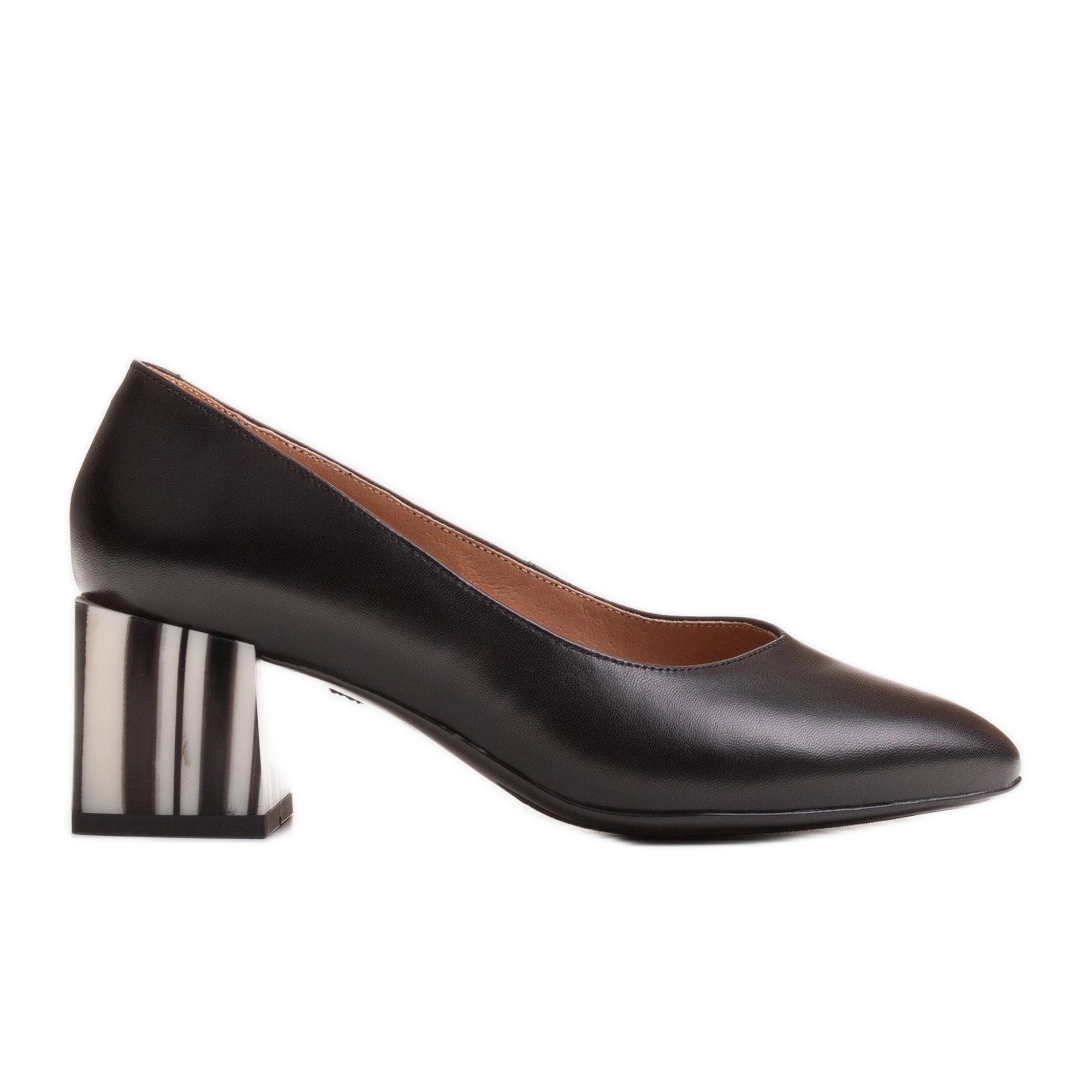 Tyylikäs, ja samalla luonteeltaan naisille valmistettu mustat pumput Marco -kengät ovat ehdotus naisille, jotka arvostavat klassikoita muodikkaalla aksentilla. Valkoisten ja valkoisten raidojen ominainen viesti "seepra" lisää muotoilua tuoreutta ja keveyttä, ja mantelin varpaiden optisesti pidentää jalan siluettia.