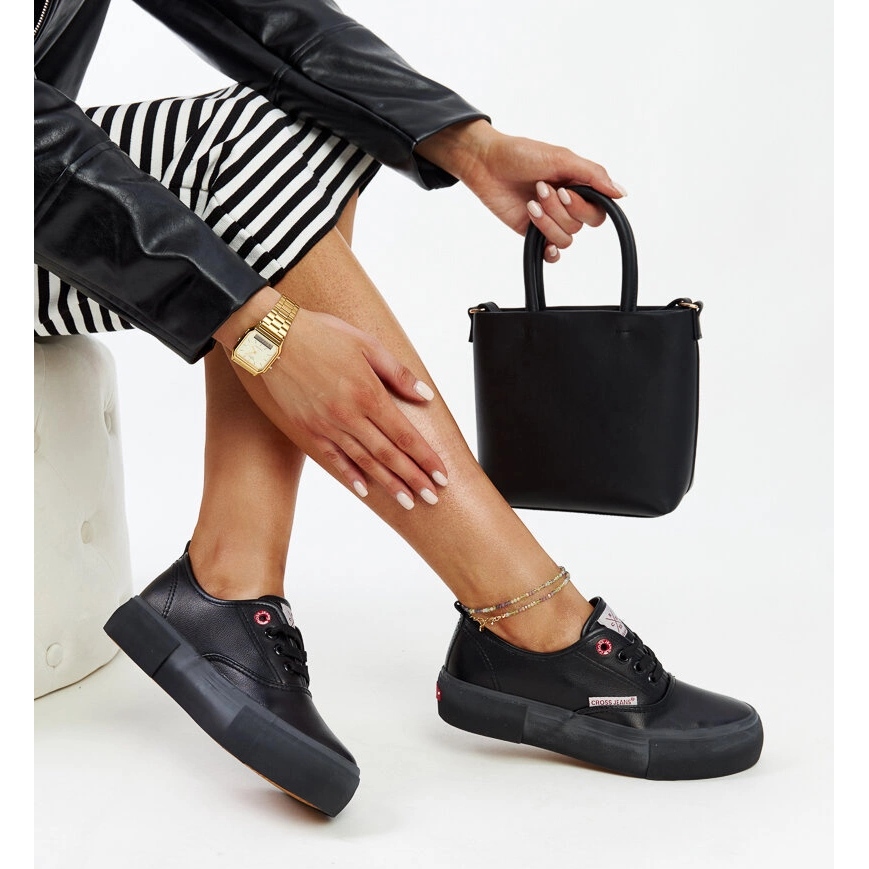Mustat naisten ristifarkut ovat välttämättömiä jokaisen muodikkaan naisen vaatekaappiin. Nämä tyylikkäät kengät yhdistävät mukavuuden ja tyylikkyyden, jonka ansiosta ne ovat täydellisiä jokapäiväiseen elämään ja vähemmän muodollisissa tilanteissa. Pyöreällä nenä- ja keskisuurilla kantapäällä lenkkarit varmistavat riittävän vakauden ja mukavuuden pukeutumisesta pitkinä päivinä.