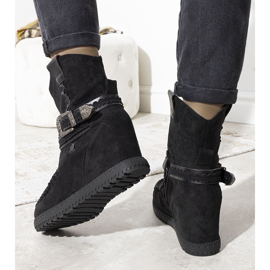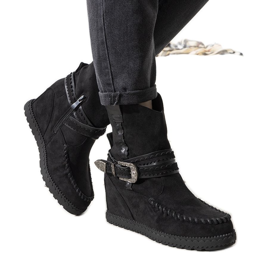 Mustat naisten Boho Hanson -eristetyt saappaat - tyylikkäitä, mukavia ja valmiita viileämpiin päiviin. Sueuden ekologisesta nahasta valmistettu malli syvän mustan mustaa sopii täydellisesti syksyn ja talven tyyliin. Yläosan paksu ompelu ja koristeellinen hihna nilkan ympärillä antavat hahmon. Pehmeällä jalkineiden huopalla eristetty sisustus varmistaa mukavuuden ja lämmön jopa alhaisissa lämpötiloissa. 7 cm: n korkea -arvoinen takaosa mallii hienovaraisesti siluetin, ja kumipohja takaa hyvän otteen.