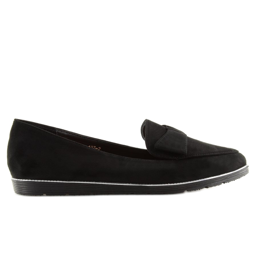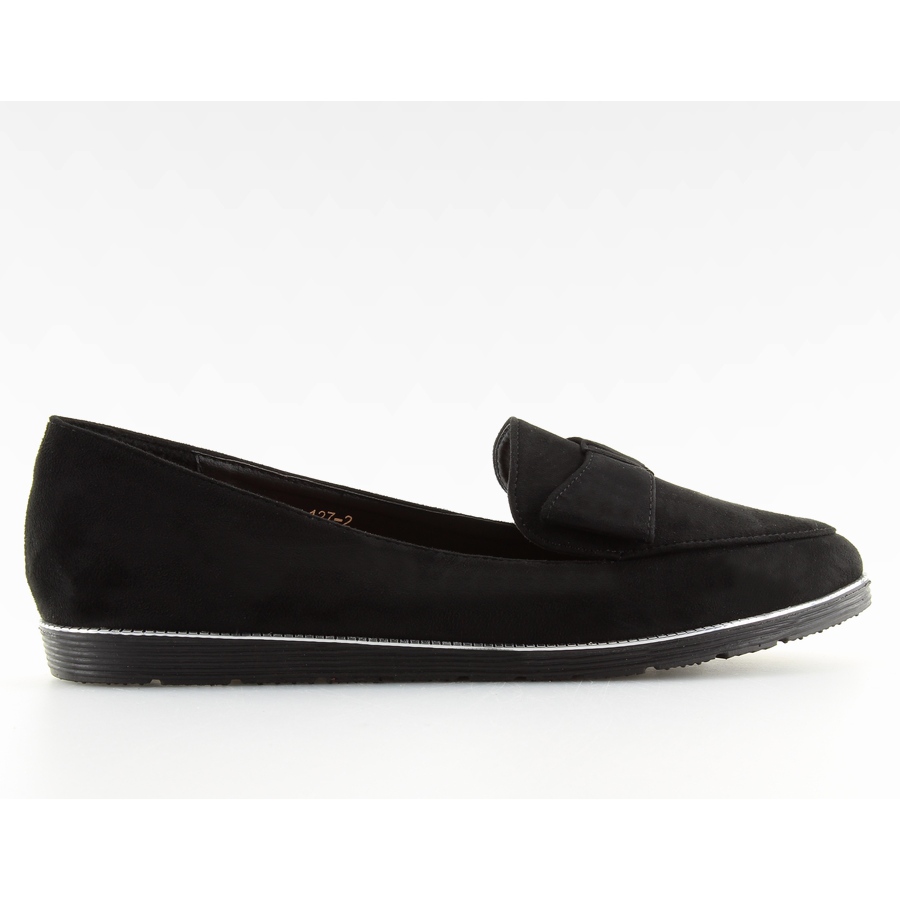 Löydä eleganssia ja mukavuutta naisten mustilla mokasiineilla 127-2 musta! Nämä tyylikkäät kengät, joissa on kaunis rusetti ja hopeareunus pohjassa, korostavat varmasti yksilöllistä tyyliäsi ja sopivat kaikkiin arkimuotoihin.