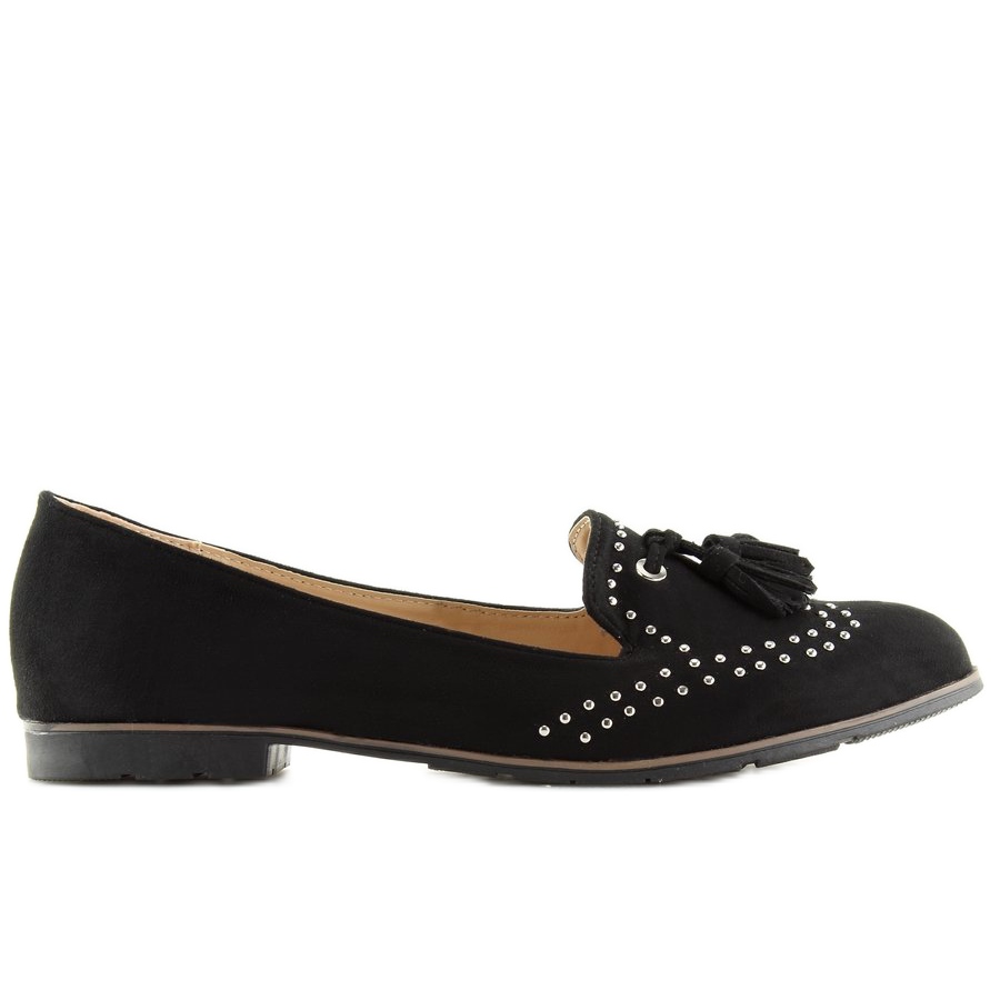 Ne erottuvat paitsi klassisesta mustasta väristään, myös ainutlaatuisista yksityiskohdistaan. Herkät hopeiset strassit luovat alkuperäisen kuvion, ja koristeelliset tupsut lisäävät keveyttä ja charmia. Näiden aksenttien ansiosta mokasiinit täydentävät täydellisesti sekä farkkuja että hameita, jolloin voit luoda ainutlaatuisen ilmeen.