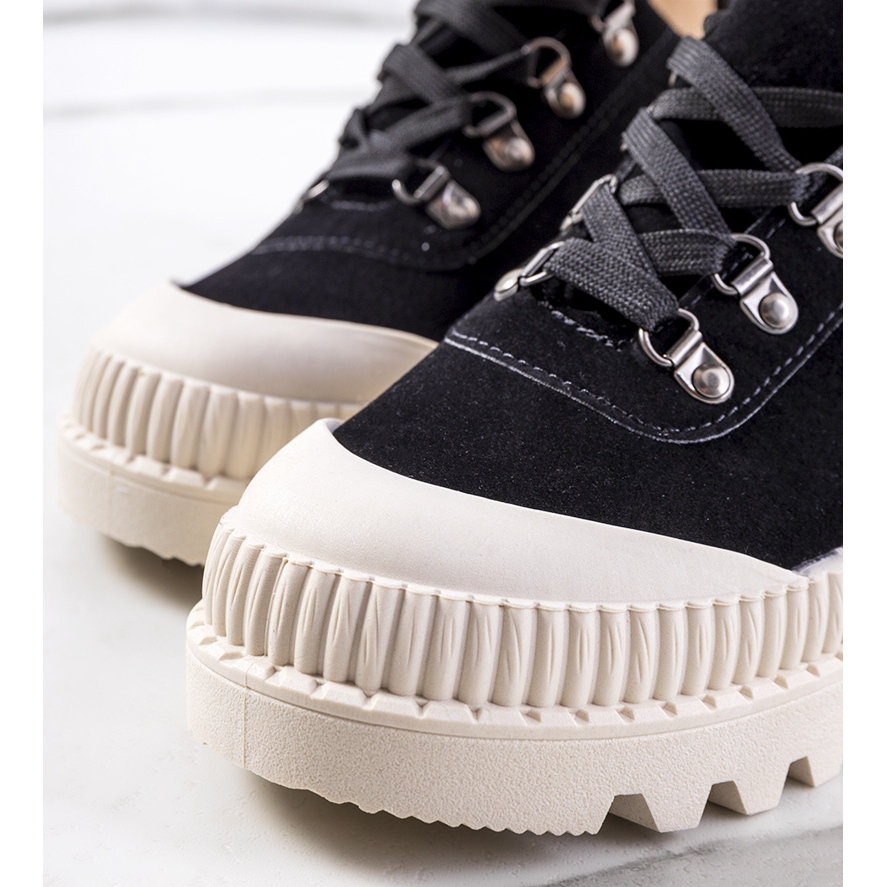 Kengät ulottuvat nilkan yläpuolelle, minkä ansiosta ne sopivat täydellisesti paitsi urheilu-, verkkarityylien myös romanttisten mekkojen kanssa. Niiden universaali musta väri tekee niistä helposti yhdisteltäviä eri vaatekaappiasuihin.