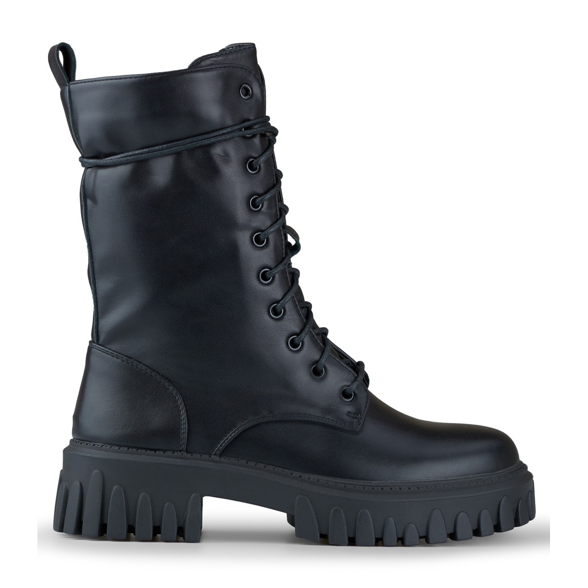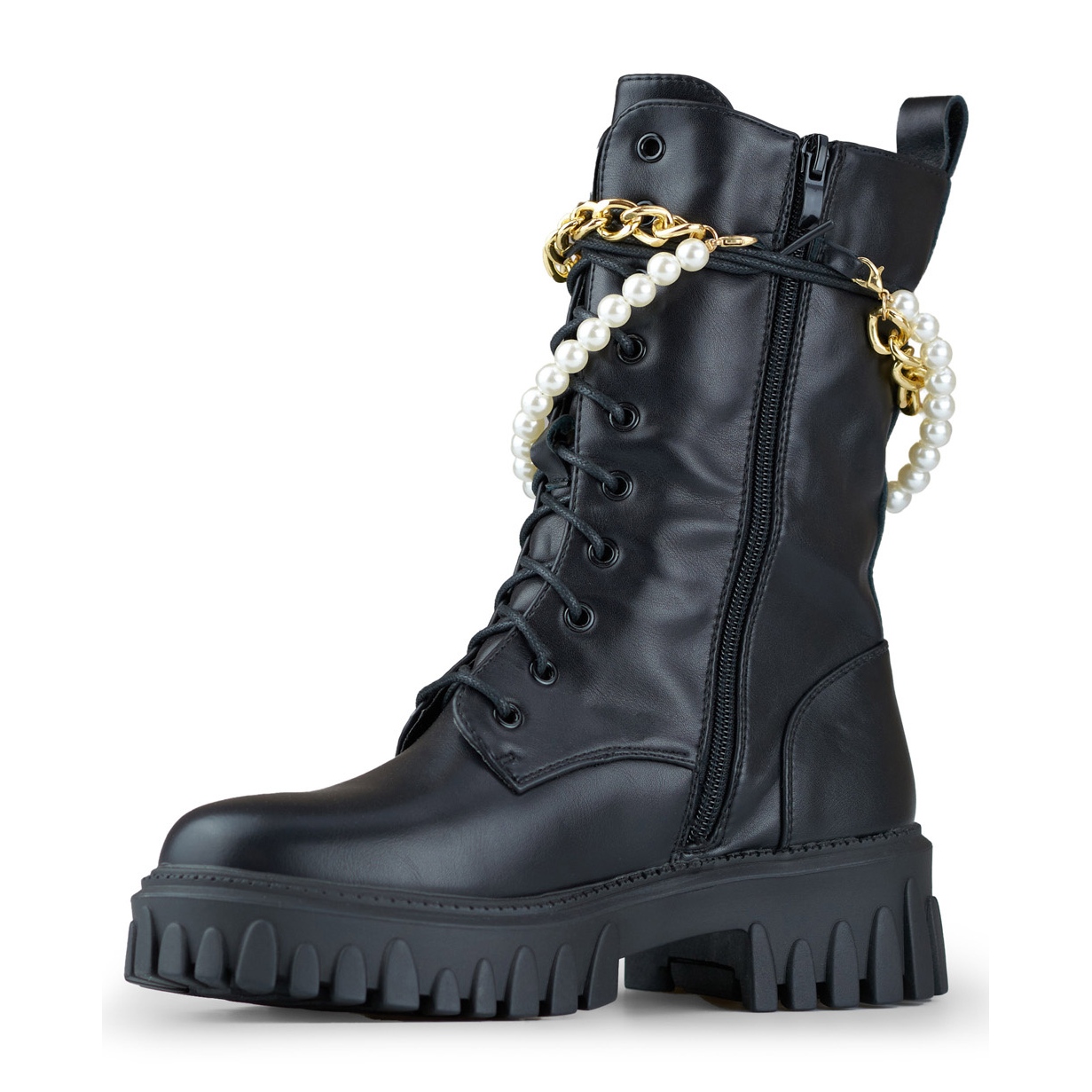 Ekologisesta nahasta valmistettu moderni, ajattomat mustat työntekijät. Rock -hahmon (strassien, ketju) yhdistelmä käytännön ratkaisuihin - linna ja nauhoitus varmistavat nopean aseman ja täydellisen istuvuuden, ja irrotettava sisustus antaa mahdollisuuden muuttaa ilmettä nopeasti. Eristetty sisustus saa kengät toimimaan syksy/talvikaudella.