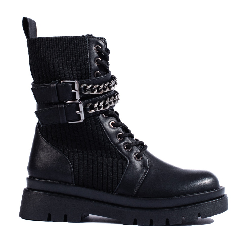 Nämä korkealaatuisesta keinonahasta valmistetut nilkkurit ovat sekä kestäviä että ympäristöystävällisiä. Ketjun lisääminen lisäominaisuudena korostaa näiden kenkien ainutlaatuista luonnetta ja lisää hieman kireyttä mihin tahansa tyyliin. Solkikiinnitys yhdistettynä nauhoitukseen ei vain lisää estetiikkaa, vaan mahdollistaa myös jalkineiden täydellisen mukauttamisen yksilöllisiin tarpeisiisi.