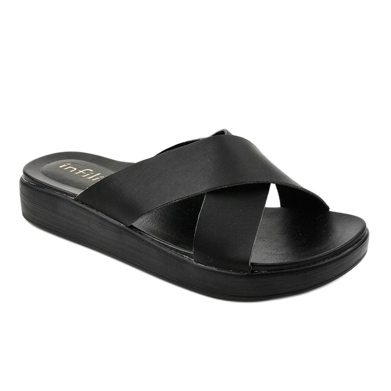 Mustat naisten tossut LU22 ovat ihanteellinen tarjous naisille, jotka arvostavat mukavuutta ja muodikasta ilmettä joka päivä. Nämä rennot varvastossut on valmistettu korkealaatuisesta ekologisesta nahasta syvän mustassa värissä, joten ne täydentävät loistavasti kaikki kesätyylit.