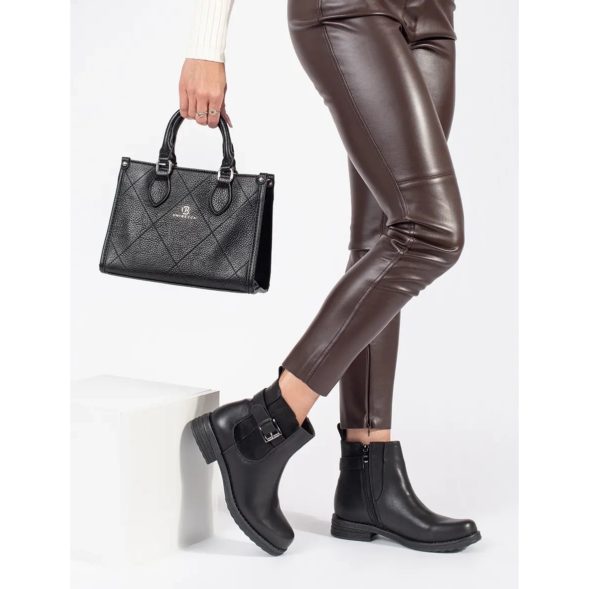 Mustat naisten saappaat, joissa on matalalla oleva solki valmistajalta. Toinen tuotemerkki on täydellinen valinta jokaiselle muodikkaalle naiselle, joka etsii päivittäin yleisiä ja mukavia kenkiä. Korkealaatuisesta ekologisesta nahasta valmistettu nämä saappaat ilahduttavat yksinkertaisella ja tyylikkäällä suunnittelulla.
