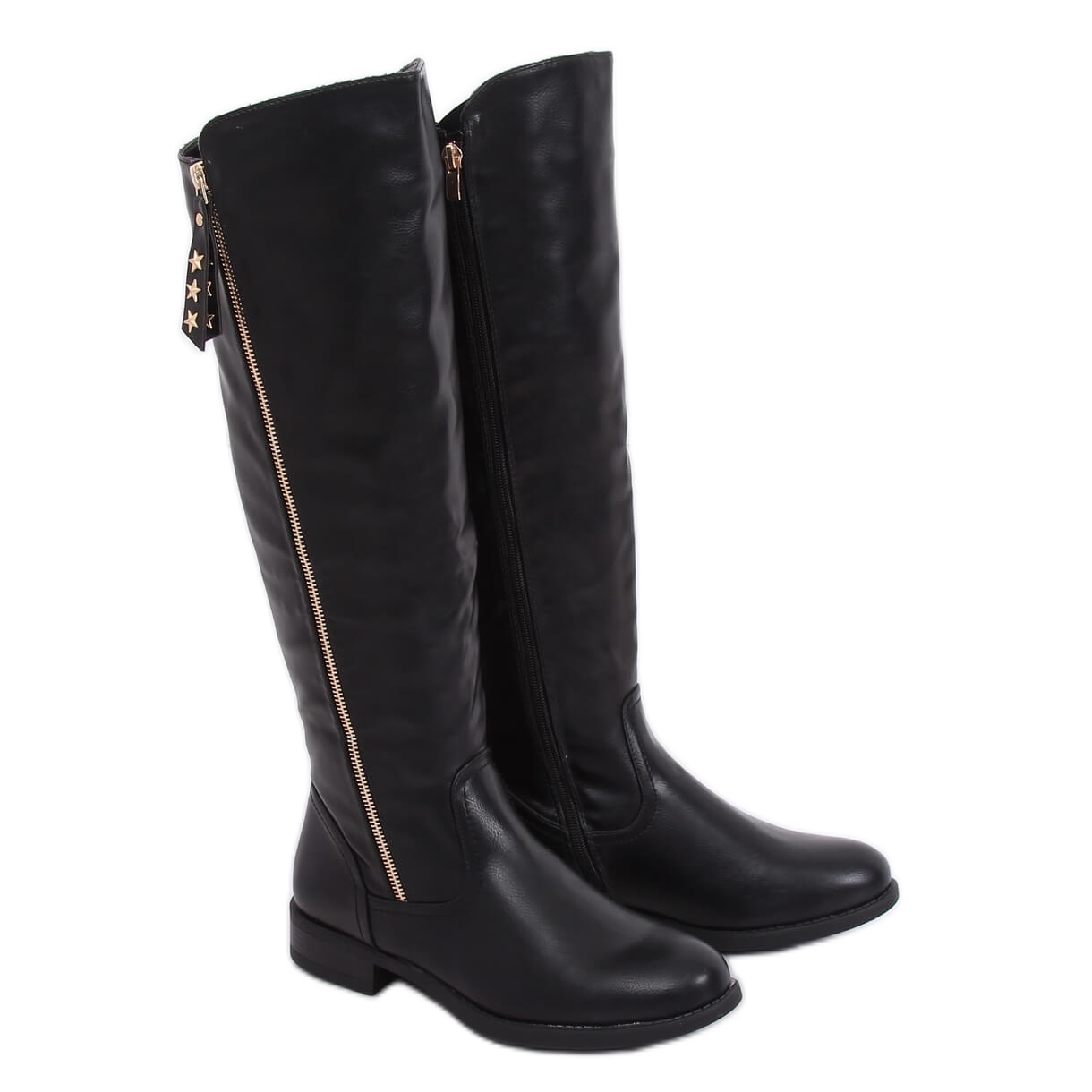 Naisten mustat saappaat MR-6 Black ovat täydellinen valinta kaikille naisille, jotka arvostavat muodikasta ja mukavaa tyyliä. Nämä tyylikkäät tasakorkoiset saappaat ilahduttavat huolellisesti suunnitellulla päällyksellä, joka erottuu koristeellisesta kultaisesta vetoketjusta ja tähtiriipuksesta, mikä antaa niille ainutlaatuisen luonteen.