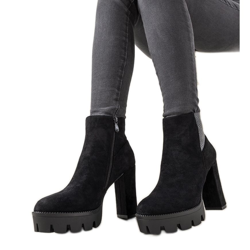 Mustat naisten paksupohjaiset Idalina-saappaat ovat täydellinen valinta jokaiselle naiselle, joka haluaa lisätä ainutlaatuisen luonteen syksyiseen tyyliinsä. Korkea tolppa, jonka korkeus on vaikuttava 11 cm, korostaa jalkoja ja varmistaa samalla käyttömukavuuden.