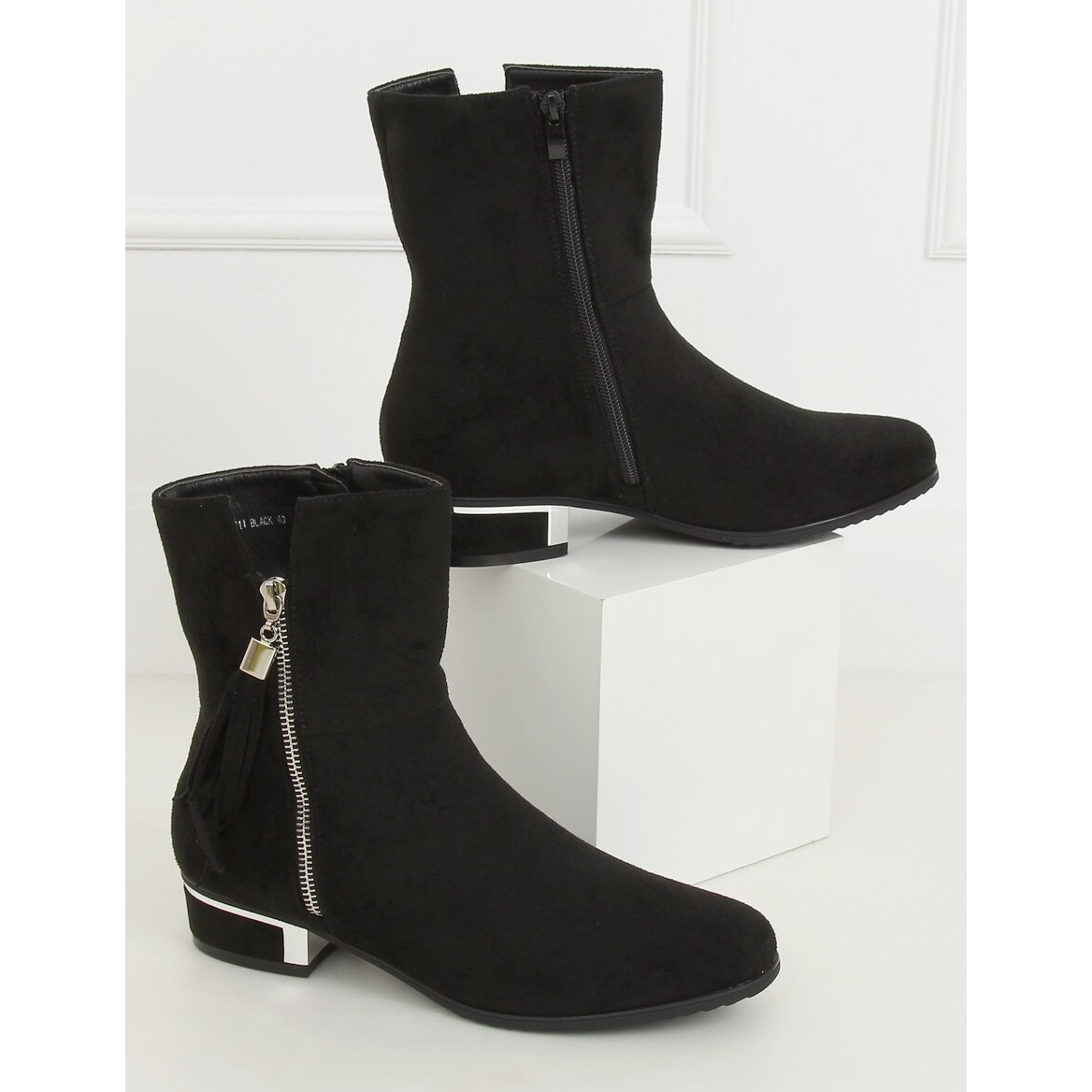Löydä eleganssia ja mukavuutta naisten mokkanahkasaappaissa HFN-2311 Black. Nämä klassiset mustat saappaat valloittavat ajattomalla tyylillään ja alkuperäisillä yksityiskohdilla, kuten hopeaelementeillä kantapäässä ja koristeellisella vetoketjulla, jotka varmasti herättävät huomion.