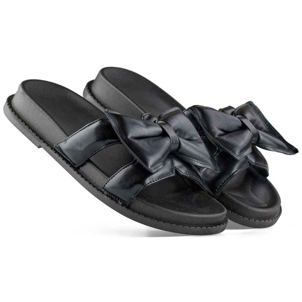 Inna marka Mustat naisten tossut, joissa rusetti eko-nahasta