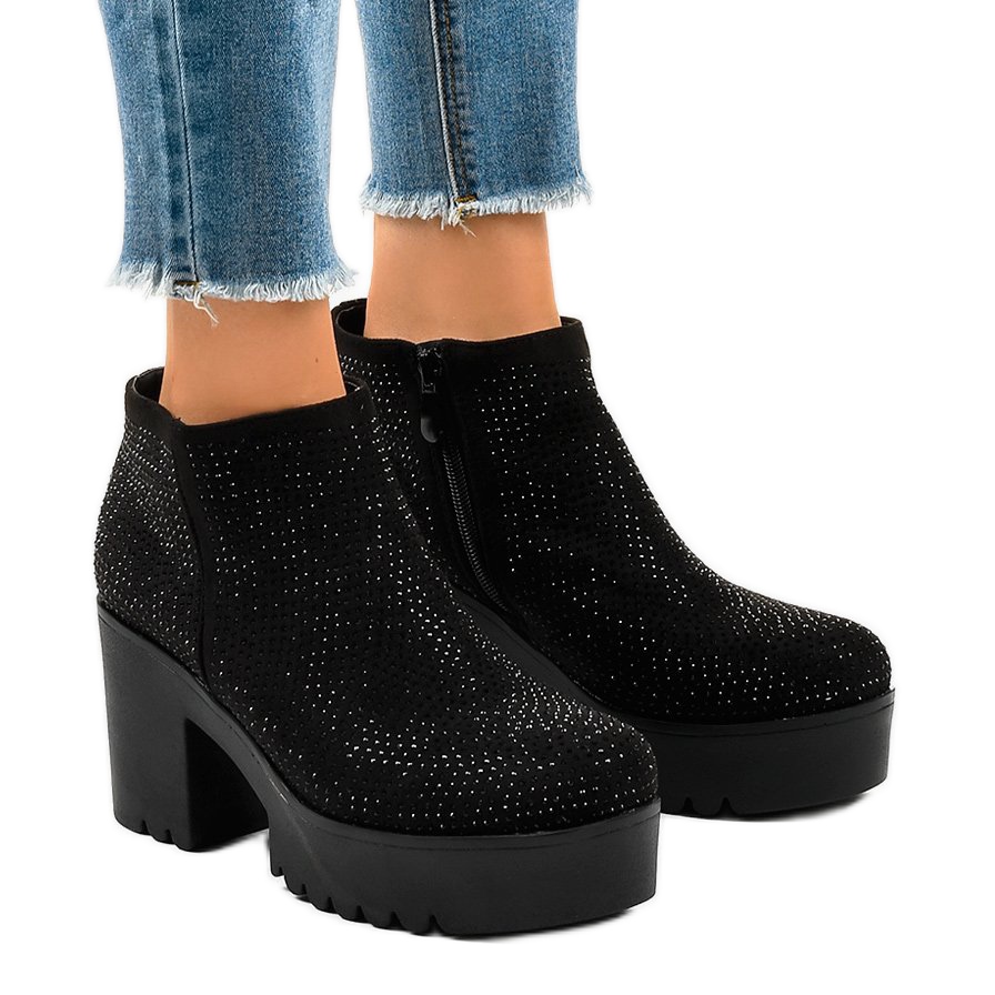 Mustat CN880 trapper-saappaat on rikastettu strassilla ja nastoilla, mikä antaa niille muodikkaan rock-luonteen. Vetoketju helpottaa pukemista, ja valmistajan tyylikäs laatikko tekee siitä ihanteellisen lahjaidean. Nämä tyylikkäät nilkkurit täydentävät täydellisesti mitä tahansa vaatekaappia ja herättävät varmasti huomiota. Valitse CN880-nilkkurit ja nauti mukavuudesta ja muodikkaasta lookista joka päivä!