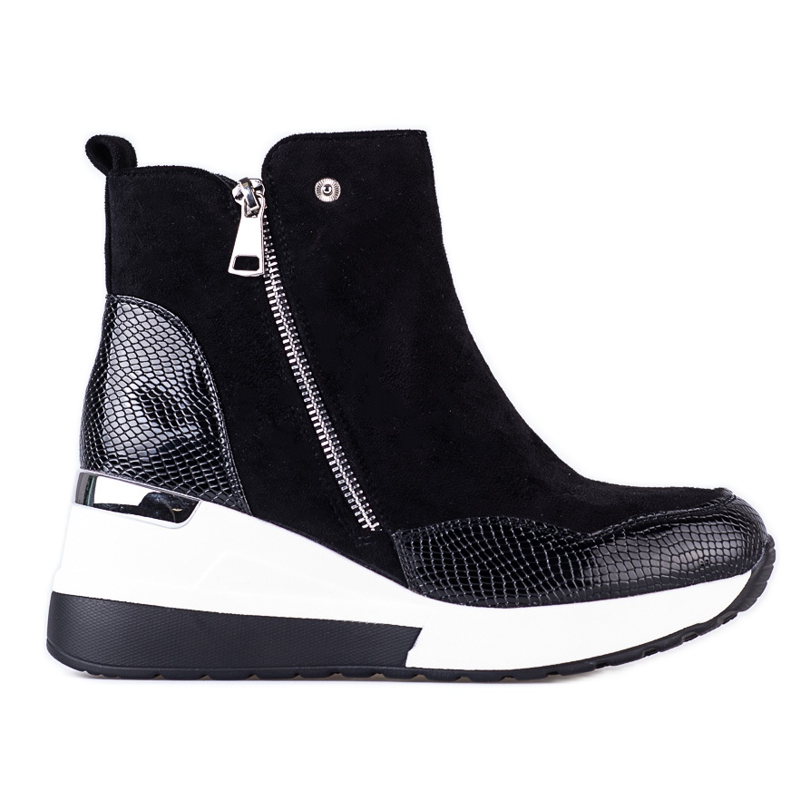 Naisten mustat urheilusaappaat, joissa on valkoinen kiila valmistajalta Shelovet, ovat erinomainen valinta mukavuutta ja muodikasta ilmettä arvostaville naisille. Nämä erittäin tyylikkäät kengät ovat täydellinen jokapäiväinen vaihtoehto, ja ne sopivat täydellisesti rentoon ja urheilulliseen tyyliin.