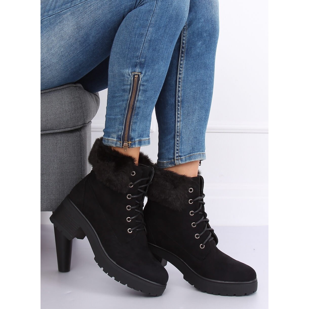 Tutustu täydelliseen mukavuuden ja tyylin yhdistelmään mustissa naisten nilkkurit B0-217. Nämä tyylikkäät kengät erottuvat ainutlaatuisesta pehmeästä turkista koristellusta päällisestä, joka lisää ripauksen ylellisyyttä ja tarjoaa miellyttävän kodikkaan tunteen päällä.