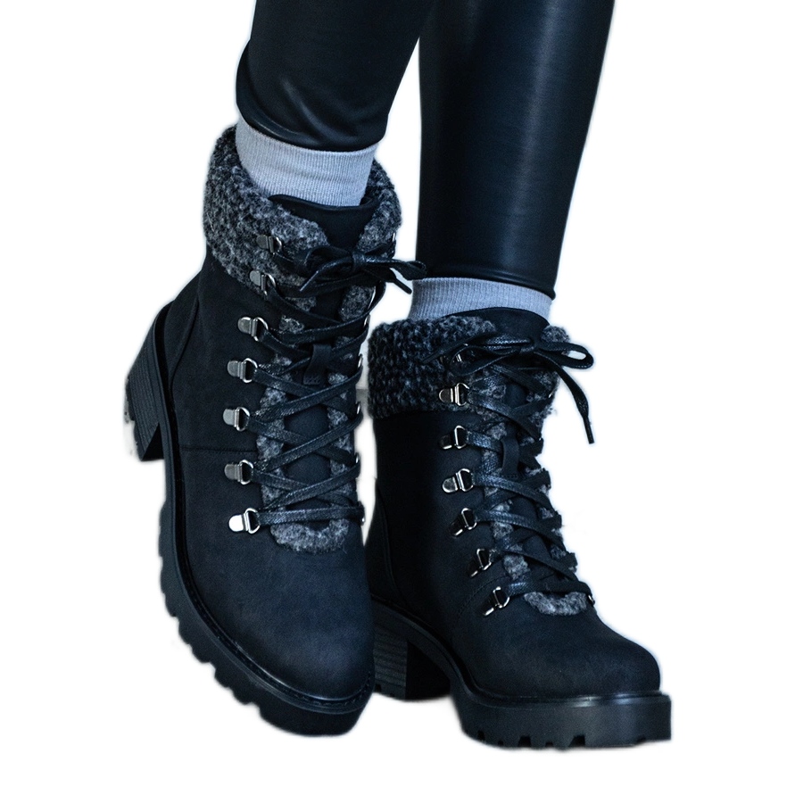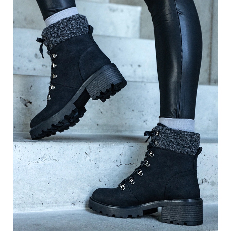 Inna marka Mustat nauhasaappaat, jotka on koristeltu Moses-lammasnahkaisella turkilla