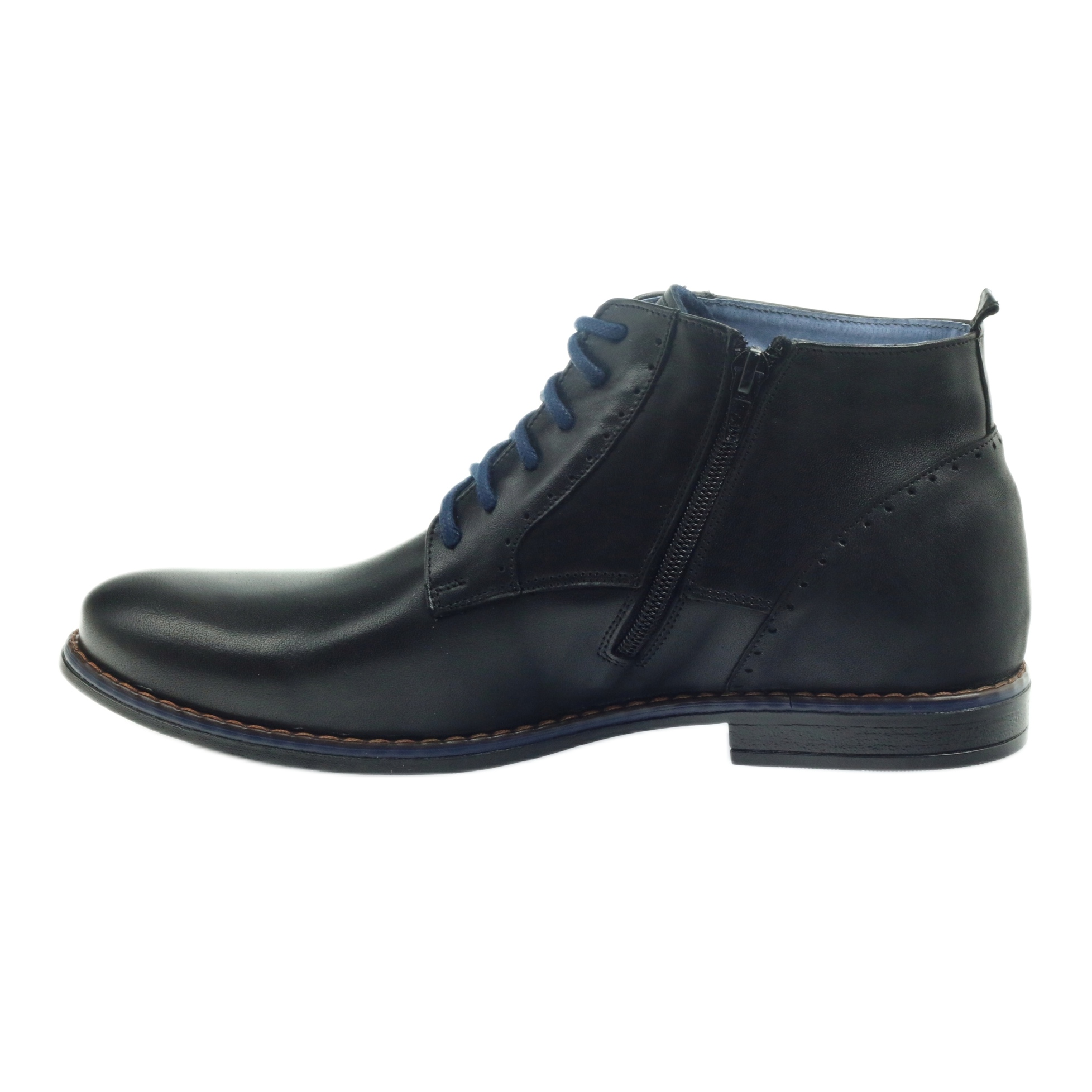 Korkeat mustat saappaat, joissa on laivastonsiniset nauhat, sopivat täydellisesti eri tyyleihin, niin arkeen kuin tyylikkäämpiinkin. Nämä hengittävät jalkineet toimivat kaikissa olosuhteissa. Valitsemalla Nikopol 677 -mallin sijoitat laatuun ja muodikkaaseen muotoiluun, joka herättää varmasti huomion.