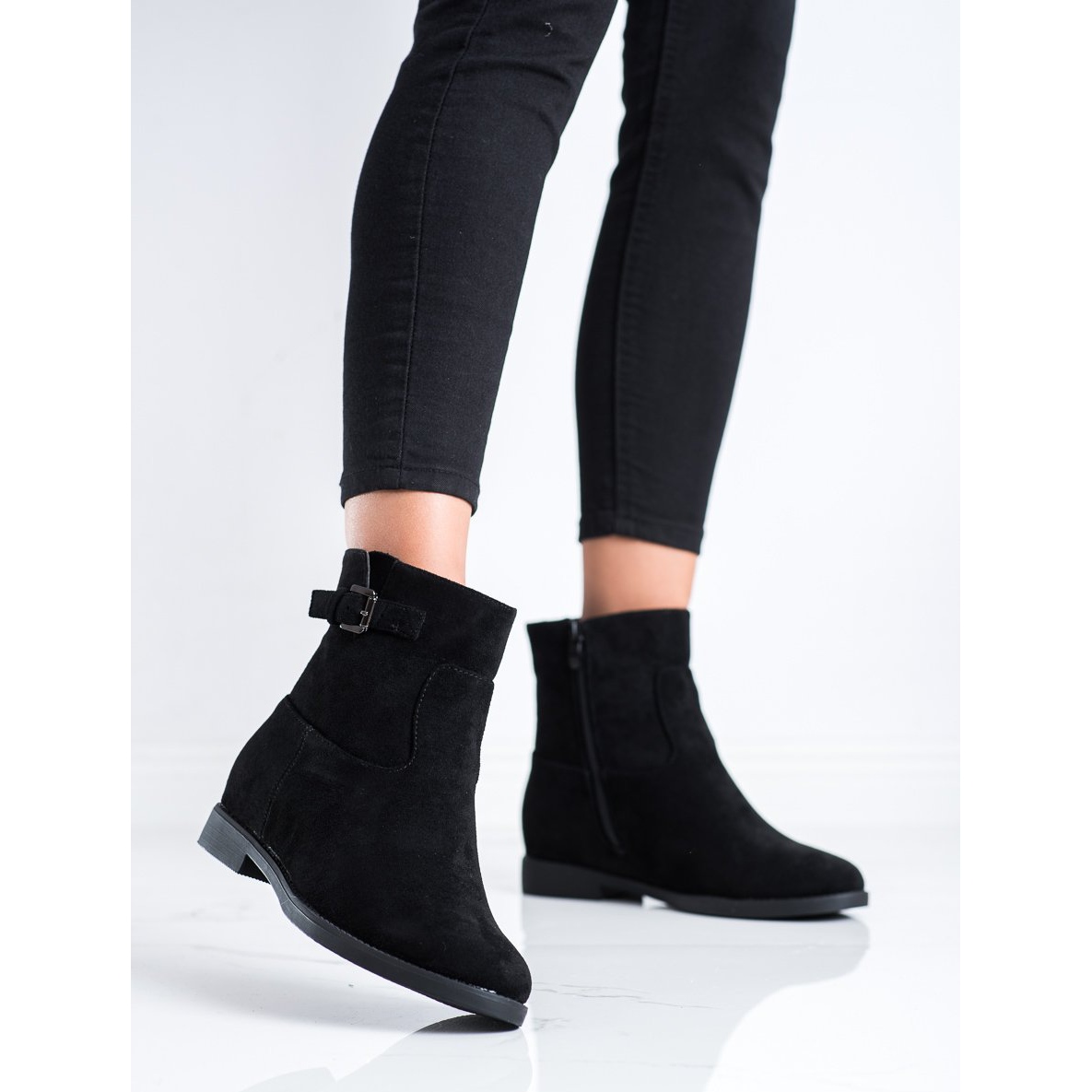 5 cm korkea piilokiila lisää muutaman senttimetrin korkeutta ja varmistaa samalla vakauden ja kävelymukavuuden. Sivuvetoketju tekee kenkien pukemisesta ja riisumisesta nopeaa ja helppoa. Lisäksi koristeellinen solki kiinnittää huomiota ja antaa saappaille ainutlaatuisen luonteen.