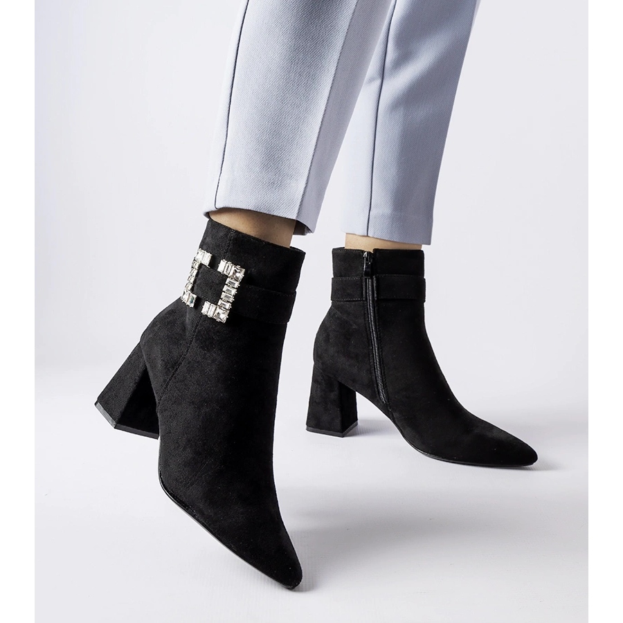 Mustat saappaat postissa, jossa on Alfero Zircons - eleganssi ja lämpöä viileämpinä päivinä. Tyylikkäät, eristetyt saappaat, jotka on valmistettu ekologisesta mokkanahasta, joka yhdistää naisten tyylikkäät päivittäiseen mukavuuteen. Herkkä, terävä nenä- ja zirkonin sisustus antaa heille ainutlaatuisen hahmon, jonka ansiosta ne ovat hienoja sekä jokapäiväiselle että tyylikkääseelle tyylille.