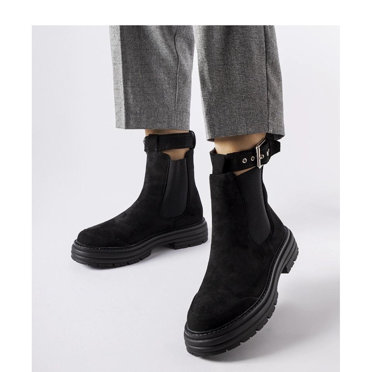 Mustat saappaat, joissa on koristeellinen lukko, ovat välttämättömiä jokaisessa naisten vaatekaapissa. Korkealaatuisesta ekologisesta mokkanahasta valmistettuna ne yhdistävät mukavuuden ja kestävyyden, mikä tekee niistä ihanteellisen valinnan viileämpiin päivinä. Keskimäärin 5 cm: n korkokengät lisäävät eleganssia, samalla kun hän ei luopu mukavuudesta käyttää pyöreän varpaiden ansiosta, mikä varmistaa sormille tilavuuden.