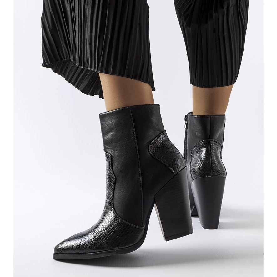 Kensley -ilmiömäiset saappaat yhdistävät naistyylin ilmaisevaan cowboy -hahmoon. Korkea kantapää, kuten post (9 cm) ja terävä nenä optisesti ohuttavat jalat, ja nilkan asennettu yläosa korostaa niitä kauniisti. Valmistettu korkealaatuisesta ekologisesta nahasta, klassisessa mustassa värissä (musta) - täydellinen syksyn talvikauden aikana muodikkaiden ystävien ja samalla mukavien ratkaisujen kanssa.