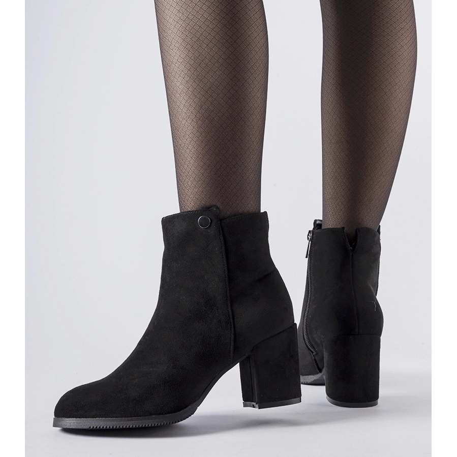 Mustat saappaat Low Risano Postissa - eleganssi ja mukavuus jokaiselle viileämmälle kaudelle. Ekologisesta nahasta valmistettu mokkanahka -tekstuuri, eristetty sisustus tarjoaa lämmön mukavuutta jopa kylminä päivinä, ja klassinen pyöreä nenä antaa ajatonta luonnetta. Tehokas ja samaan aikaan vakaa mäntä, jonka korkeus on 7,5 cm, yhdistää naistyylin mukavuuteen jokapäiväisen käytön mukavuuteen.