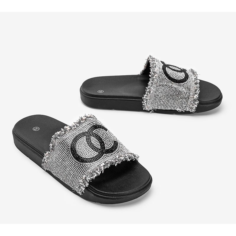 Löydä täydelliset kesän varvastossut - mustat Olimpia varvastossut strassit! Nämä ainutlaatuiset kengät ovat täydellinen yhdistelmä mukavuutta ja tyyliä. Korkealaatuisesta muovista valmistettu päällinen tekee vaikutuksen ulkonäöllään, ja rosoiset reunat antavat niille ainutlaatuisen luonteen. Lisäksi varvastossojen koko pinta on kauniisti koristeltu kiiltävillä zirkoneilla, jotka kiinnittävät huomiota ja lisäävät tyylikkyyttä mihin tahansa tyyliin.