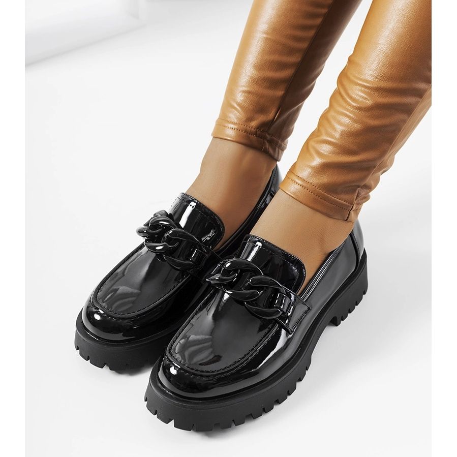 Mustat patentoidut mokasiinit, joissa paksu Dominick-pohja