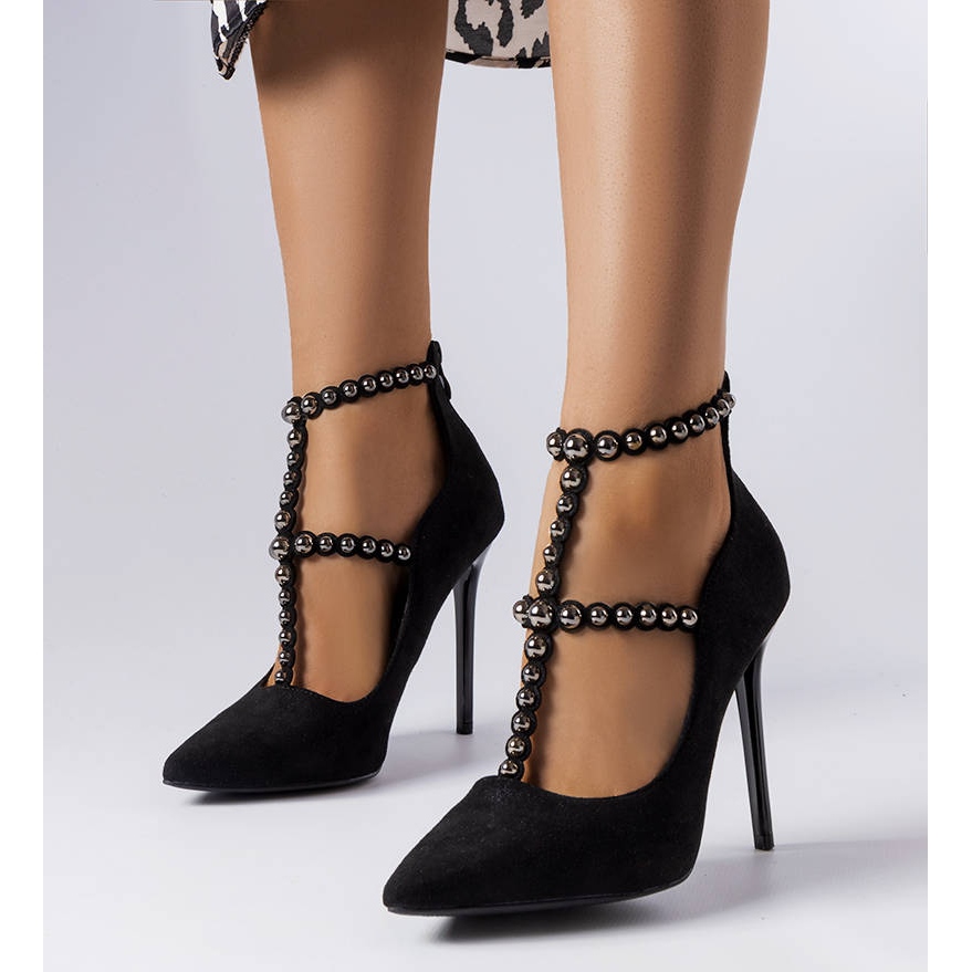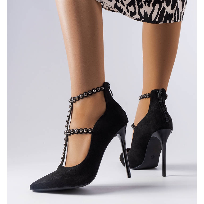Korkokenkien vakautta ja tyylikästä ulkonäköä korostavat ohut kantapää ja terävä kärki, jotka harmonisoituvat harmonisen muotoilun kanssa. Houkuttelevan nuotin lisää koristelu zirkoninauhajäljitelminä - hienovarainen yksityiskohta, joka herättää huomion ja rikastuttaa minkä tahansa tyylin ilmettä.