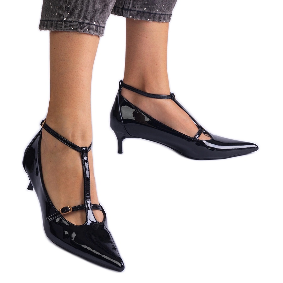 Mustat pumput, jotka on lakattu matalalla solkilla, ovat täydellinen valinta jokaiselle naiselle, joka haluaa yhdistää eleganssin mukavuuteen. Tunnetun tuotemerkin 86QG -malli Toinen tuotemerkki on erinomainen lisä sekä päivittäisiin että muodollisempiin tyylityksiin.