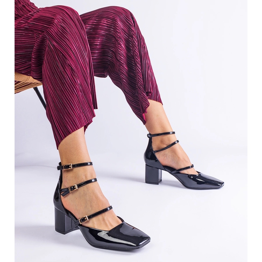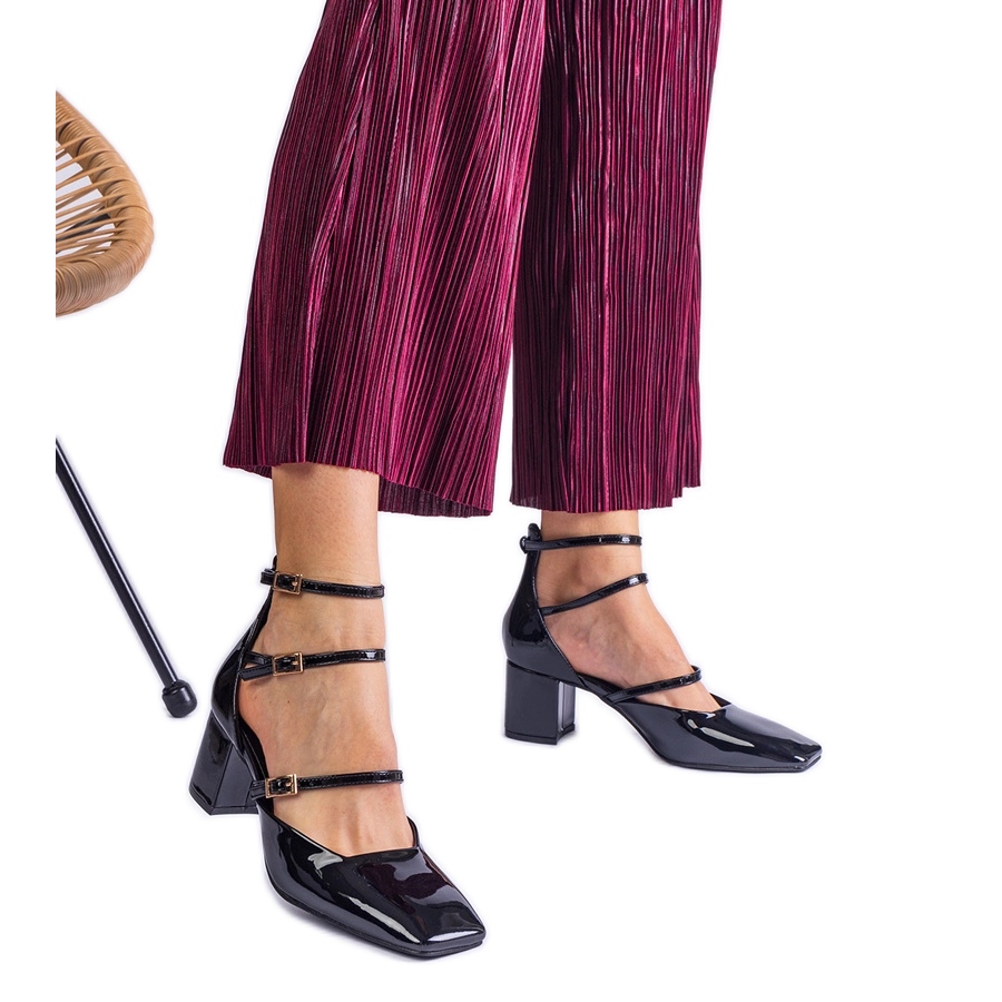 Yksityiskohdat: Mustat pumput lakattiin pylväällä, jossa on soljet