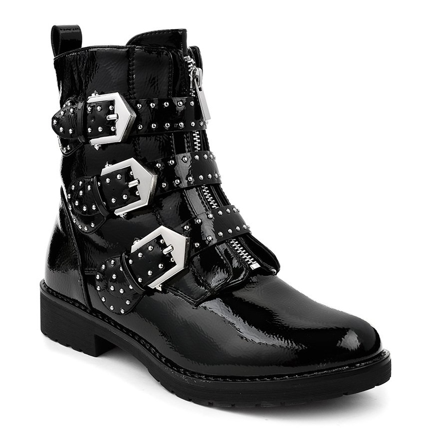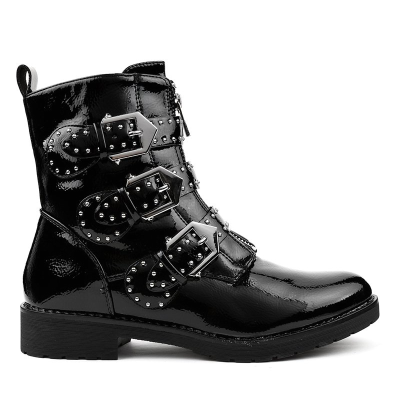 Saappaissa on pyöreä kärki, joka lisää hienovaraisuutta, ja tasainen kantapää takaa vakauden. Lisäetuna ovat tyylikkäät strassit ja nastat, jotka antavat niille luonnetta ja tekevät niistä täydellisen täydennyksen mihin tahansa tyyliin. Solki ja vetoketju takaavat helpon pukemisen ja riisumisen, ja synteettinen pohjamateriaali varmistaa kestävyyden ja kulutuskestävyyden.
