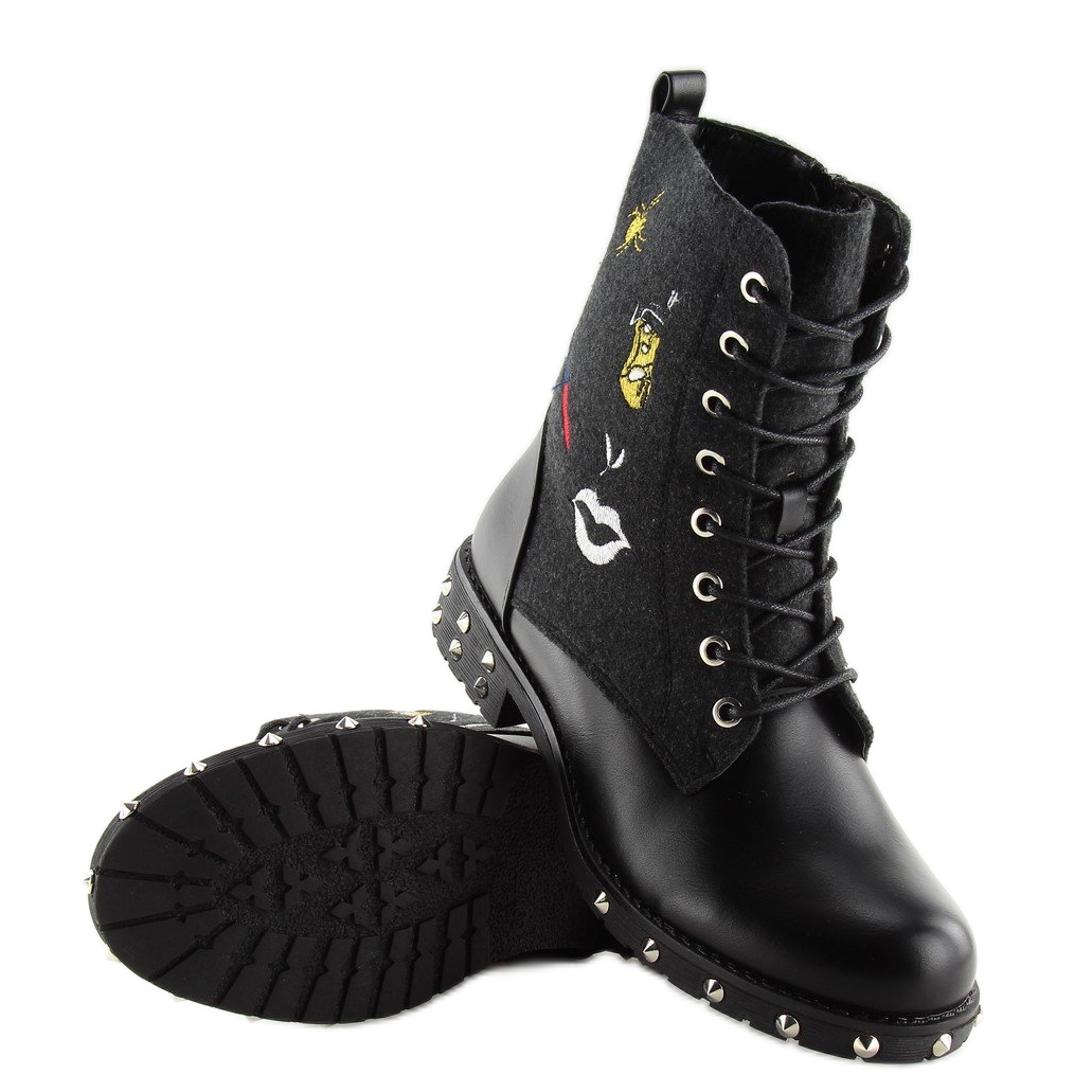 Yksityiskohdat: Mustat saappaat huopapäällisillä