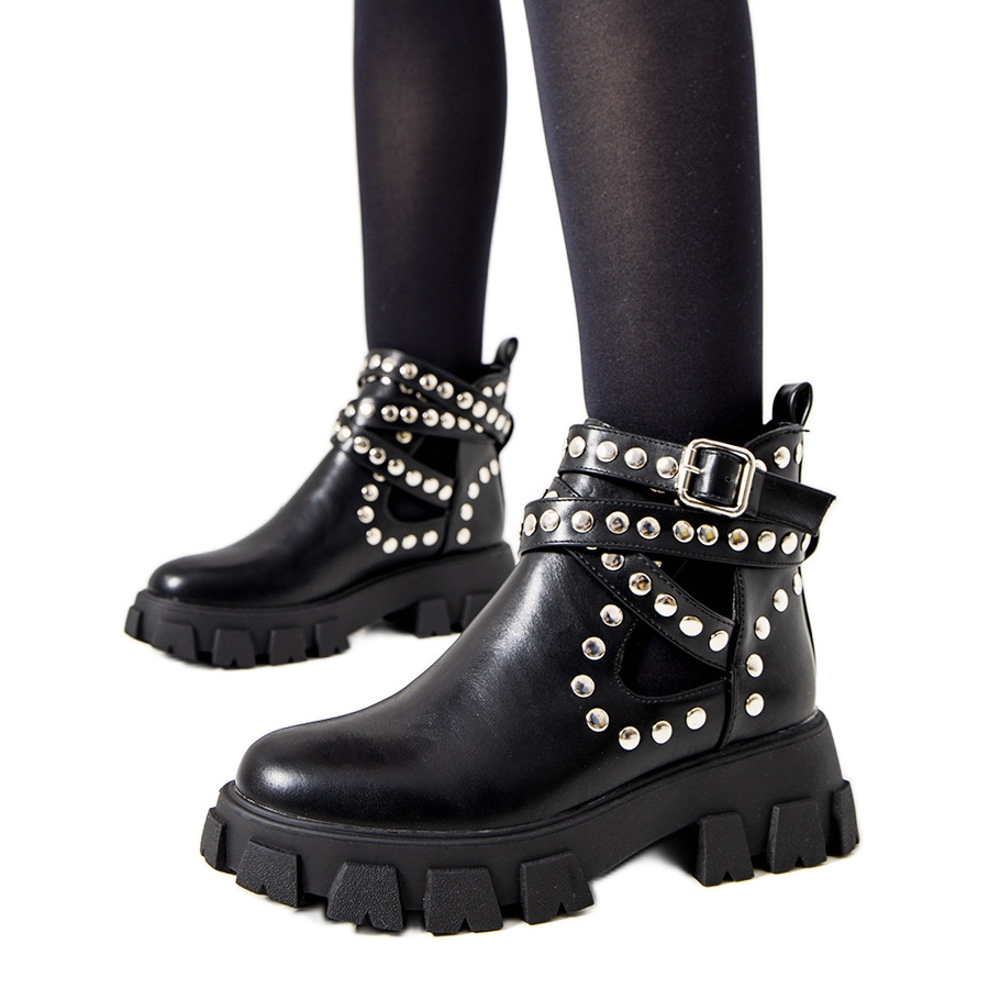 Yksityiskohdat: Mustat saappaat Kinney-nastoilla