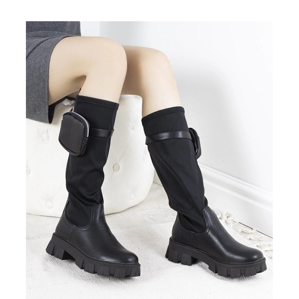 Yksityiskohdat: Mustat saappaat laukkulla Joly - Solea